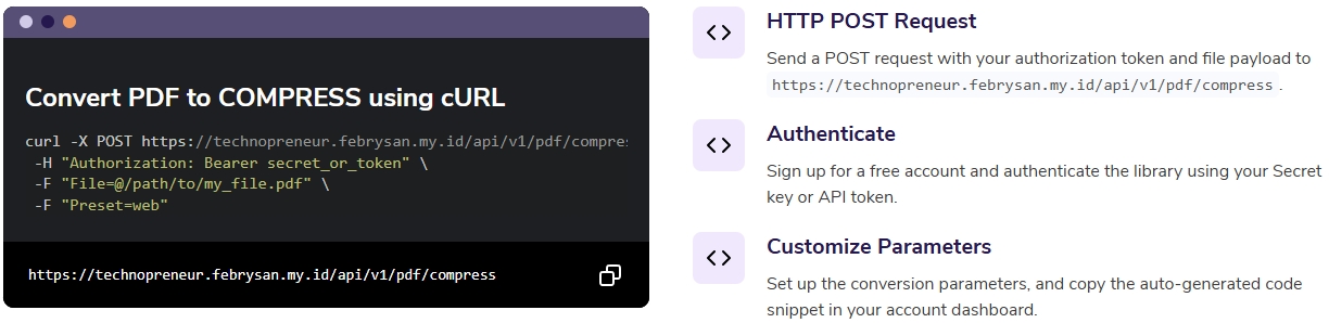 The API compresses up to 20% of PDF size for easier shareability without compromising quality in seconds.